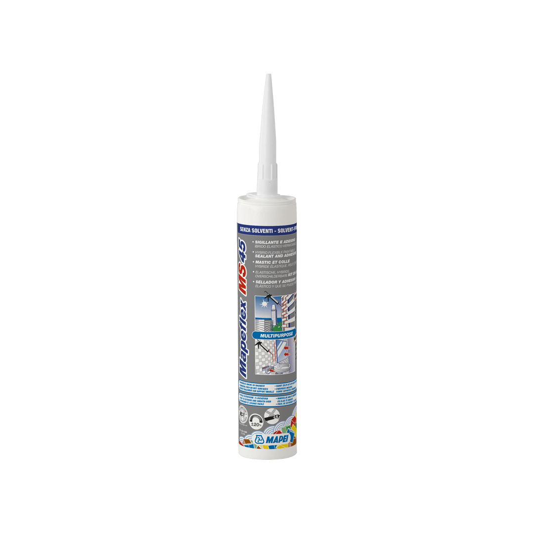 Mapeflex MS 45 is a thixotropic adhesive and sealant made from sililated polymers and thus completely free