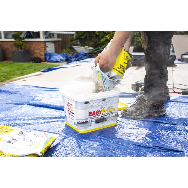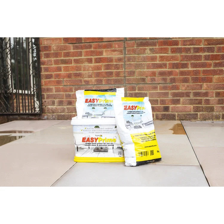 EASYPrime is a polymer modified cementitious slurry primer. It is an easy to apply high strength bonding agent for use when laying natural stone and porcelain paving. Ensures full and permanent contact is achieved with the aggregated mortar in the bedding layer. Suitable for application in domestic, commercial and public areas. Coverage depends on the coated film depth and the porosity and texture of the rigid bound sub-base. As a guide, a single 5kg sachet of EASYPrime will cover a minimum of approximately 8.0 sq.mtr
