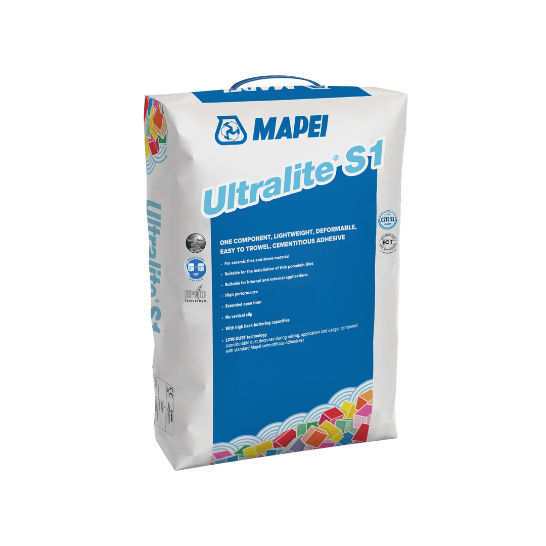 A Mapei Ultralite S1 adhesive bag on a transparent background.
